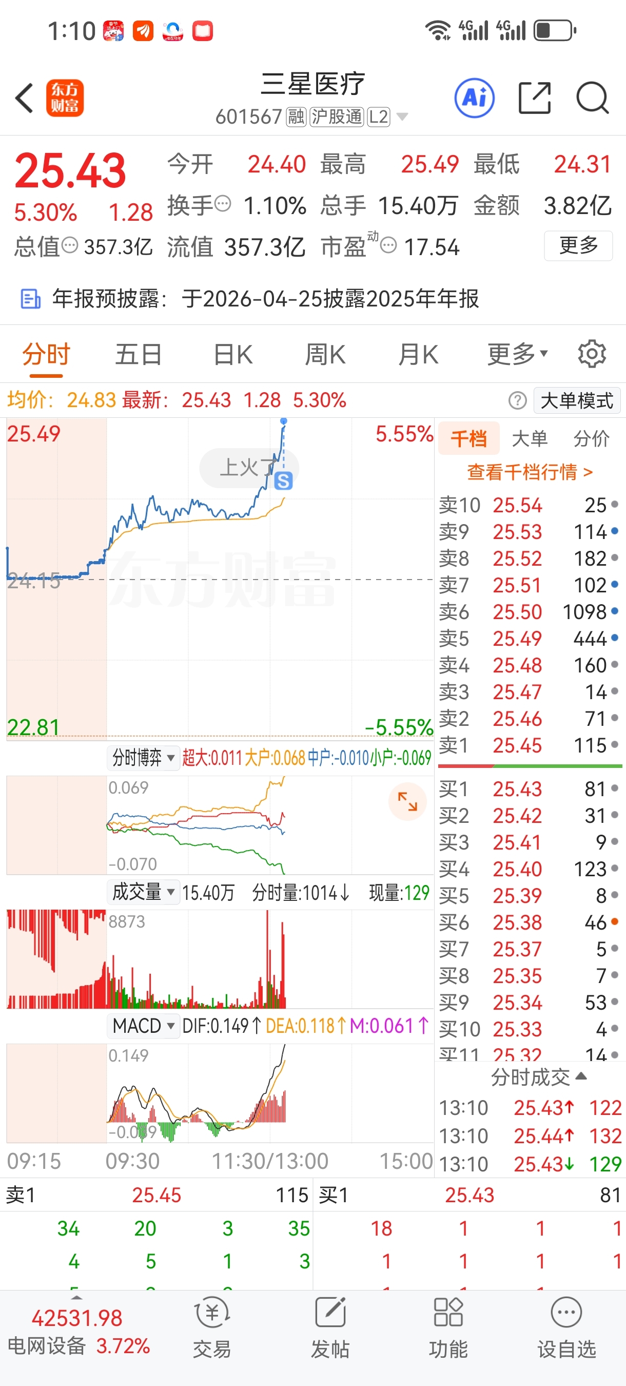 $三星医疗(SH601567)$ 做个t下来在接回来