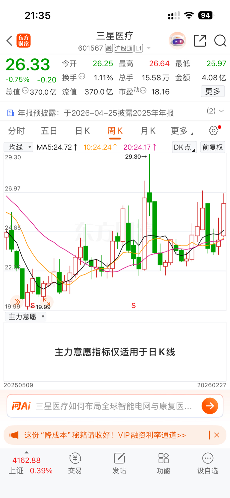 $三星医疗(SH601567)$ 三星的周K 真好看 前面几个波段抓住了 都是高点卖的,12月份以为4万亿出来要破前高格局了一把 这个波段没有抓住 遗憾了