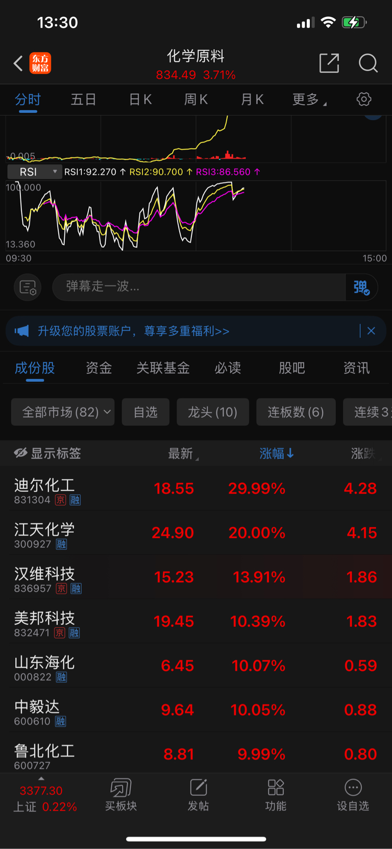 你知不知道化学原料板块发生了什么吗?北元今天不涨停则估计以后也不会有机会了,但是这个市场最大可能的就是北元涨停。