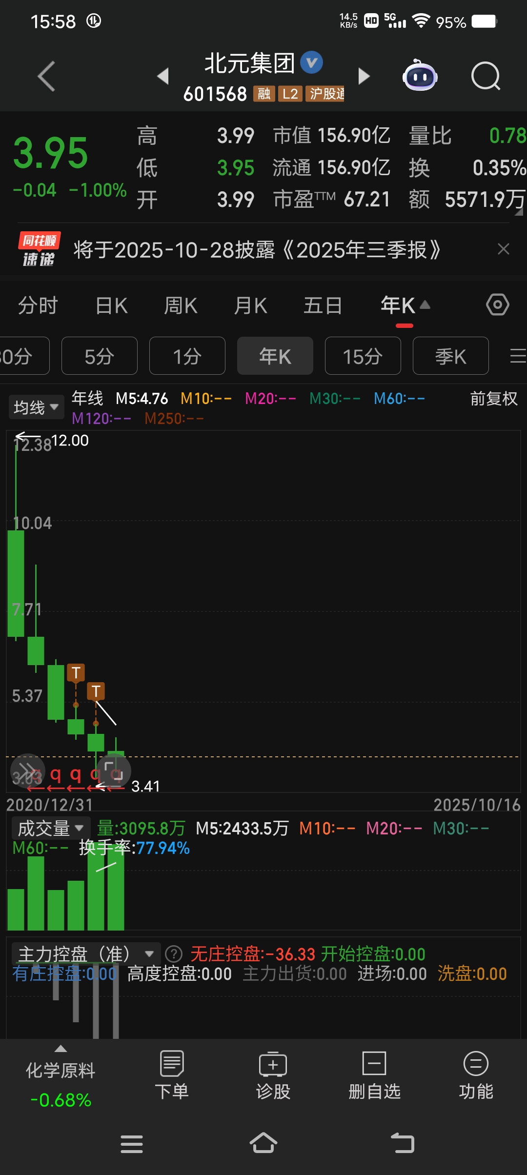 $北元集团(SH601568)$ 马上就上市5周年了,股价跌的很丝滑,年线是6个大绿柱子,怨不得别人,只能怪自己眼瞎,卖了的这次都翻了好几倍了,亏好几年了,北元的股价却还在2800,眼瞅着大盘就要去4000了,我就想问问管理层是怎么理解我们的心情的,股价跌成这样你们面子里子能过的去吗,