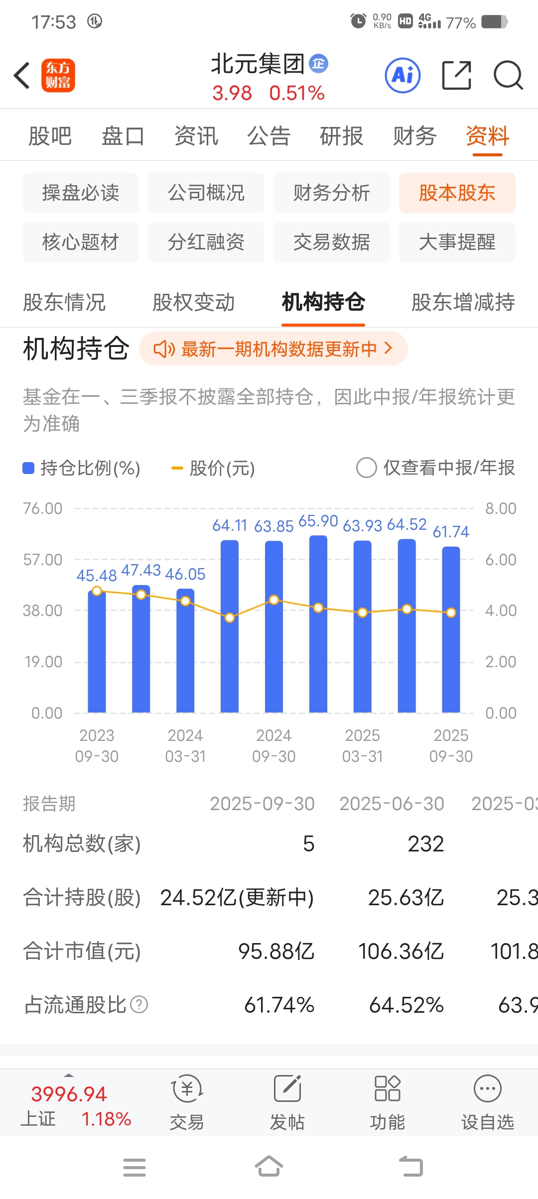 $北元集团(SH601568)$ 基金都跑了,大盘涨到4000点了,北元股价还在2800