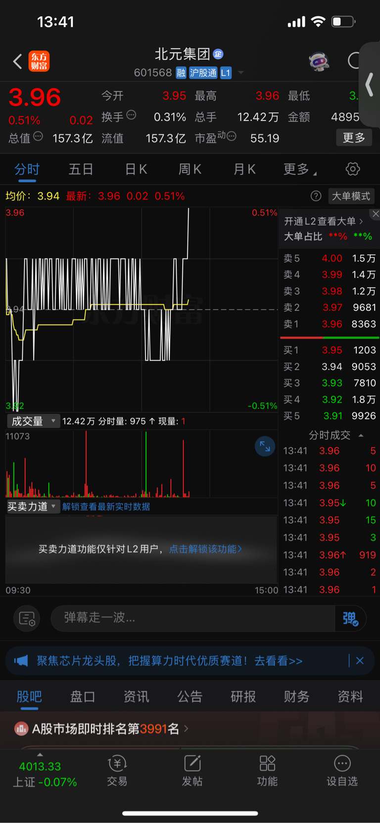 $北元集团(SH601568)$ 哇!上个小号回来竞价来到3.96,等下我再去上个小号的。