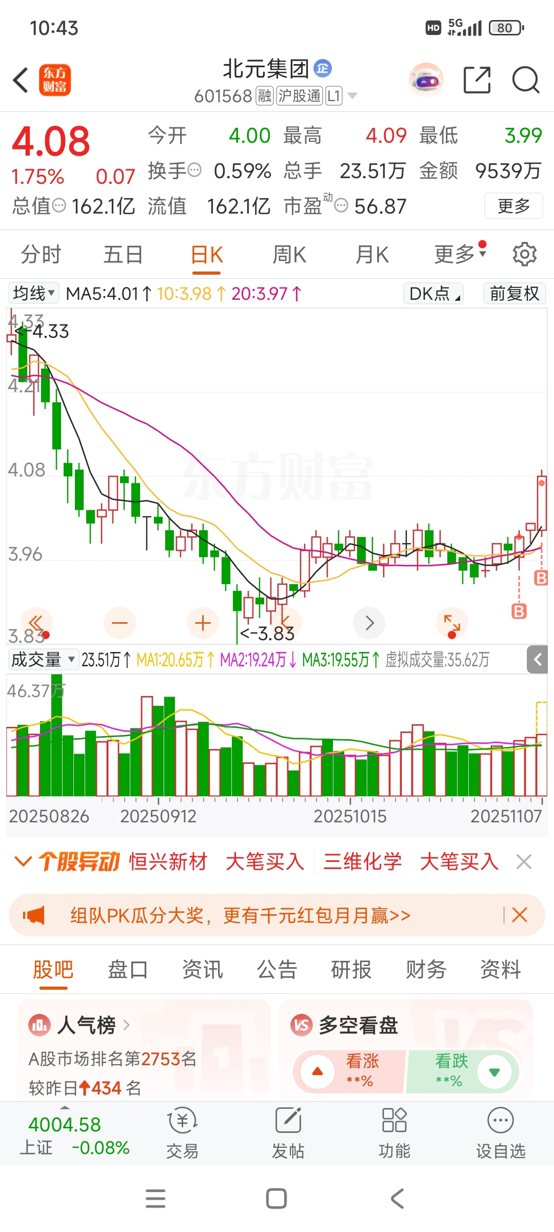 $北元集团(SH601568)$ 进场加仓,跟着兄弟们吃肉