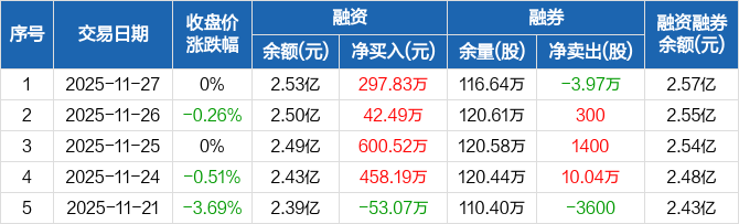 北元集团:融资余额2.53亿元,创历史新高(11-27)