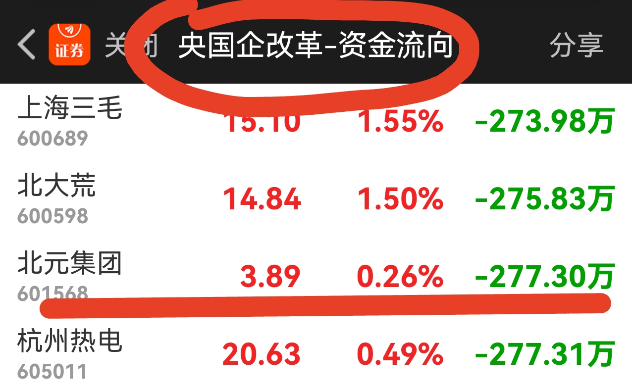 $北元集团(SH601568)$ 虽然今天资金净流出,至少划入央国企改革板块了,希望下周涨起来