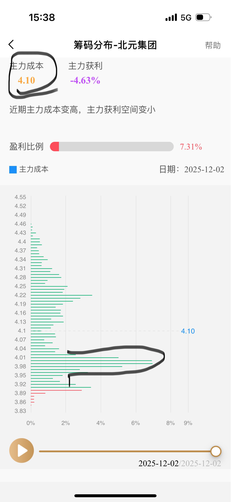 主力成本4.1,已经在4块上下形成筹码峰。今天开始越跌越买迟早赚大钱!