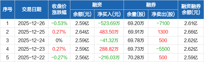 北元集团:融资净偿还523.69万元,融资余额2.59亿元(12-26)