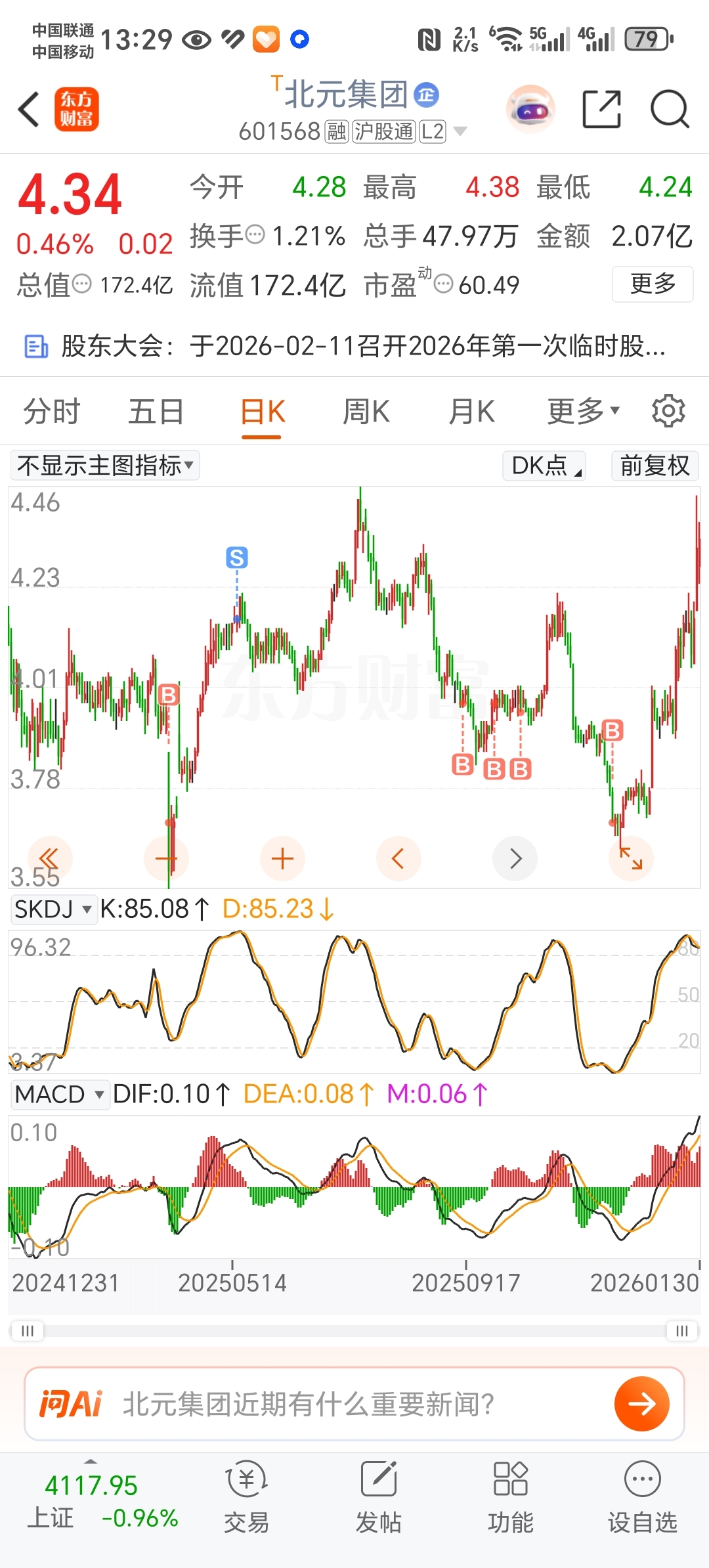 $北元集团(SH601568)$ 看SKDJ日线已经高位了,卖了又怕和别的一样继续涨