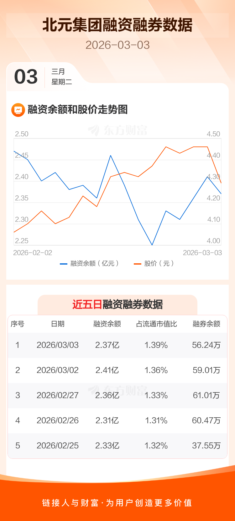 交易所最新数据显示,北元集团于2026年3月3日获融资买入2469.81万元,融资偿还2797.79万元,当日融资净偿还327.97万元。目前,该股融资余额2.37亿,占流通市值比例为1.39%。