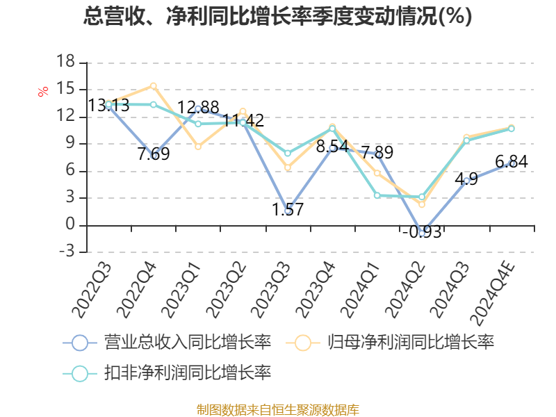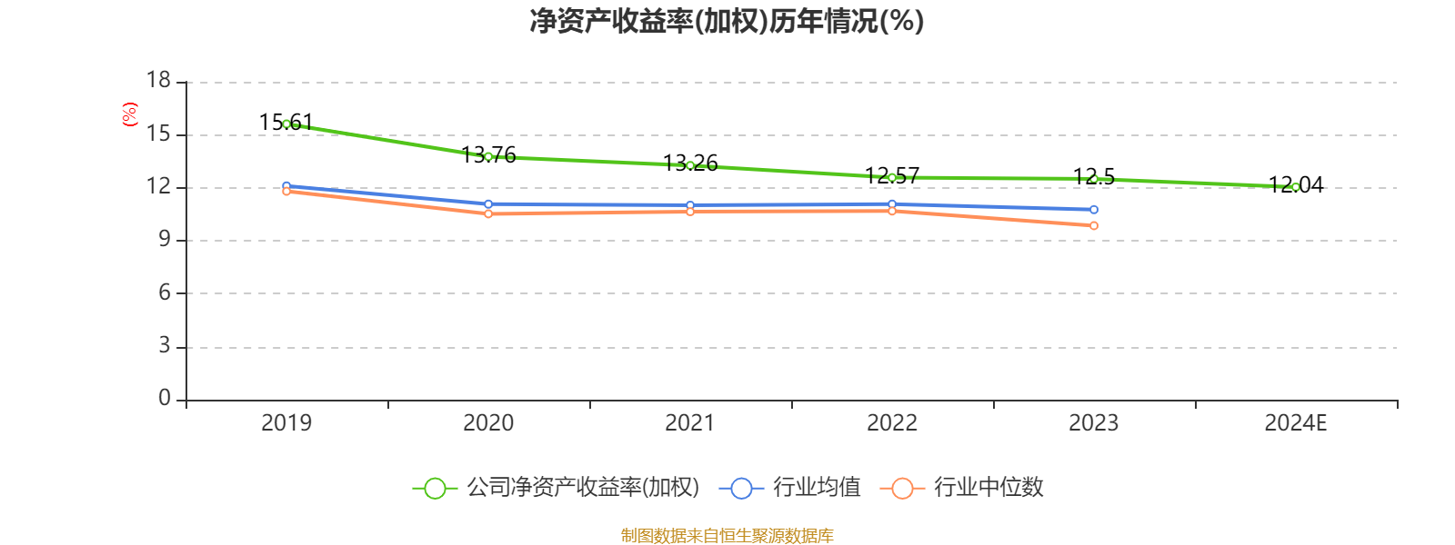 数据显示,2024年公司加权平均净资产收益率为12.04%,较上年同期下降0.46个百分点。