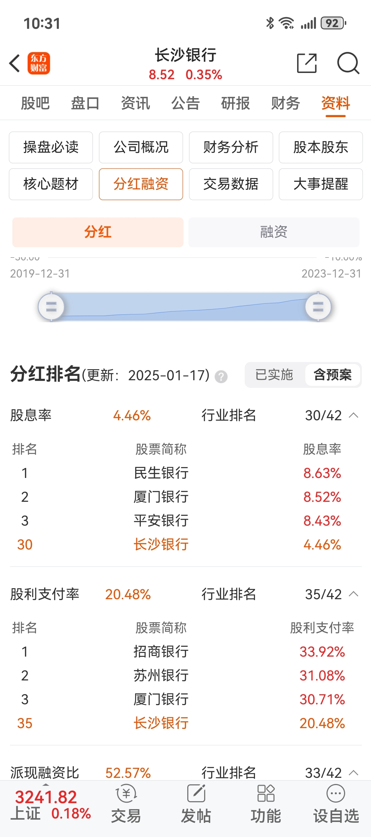但是长沙银行分红比例一直维持在百分之二十,所以24年也是每股0.38