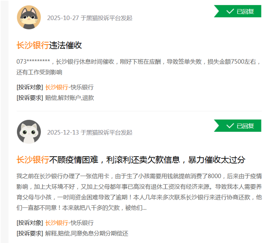 零售业务风险还体现在大量客户投诉,黑猫投诉平台数据显示,有关“长沙银行”的投诉量达300多条,其中多条涉及“暴力催收”关键词,不仅加剧声誉风险,也可能引发进一步的监管关注。资产质量的持续恶化,既对风控体系提出更高要求,也消耗了大量拨备资源,制约了银行的盈利空间与发展潜力。在县域金融展现优势的同时,长沙银行的零售业务却暴露出一定的风险,对资产质量构成了一定挑战。