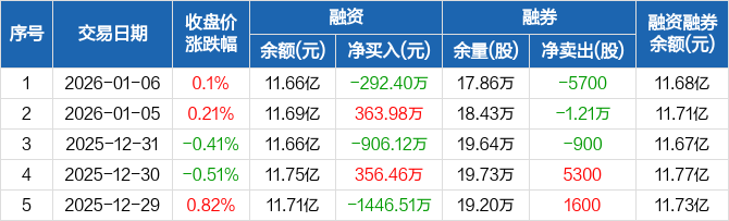 长沙银行:融资净偿还292.4万元,融资余额11.66亿元(01-06)