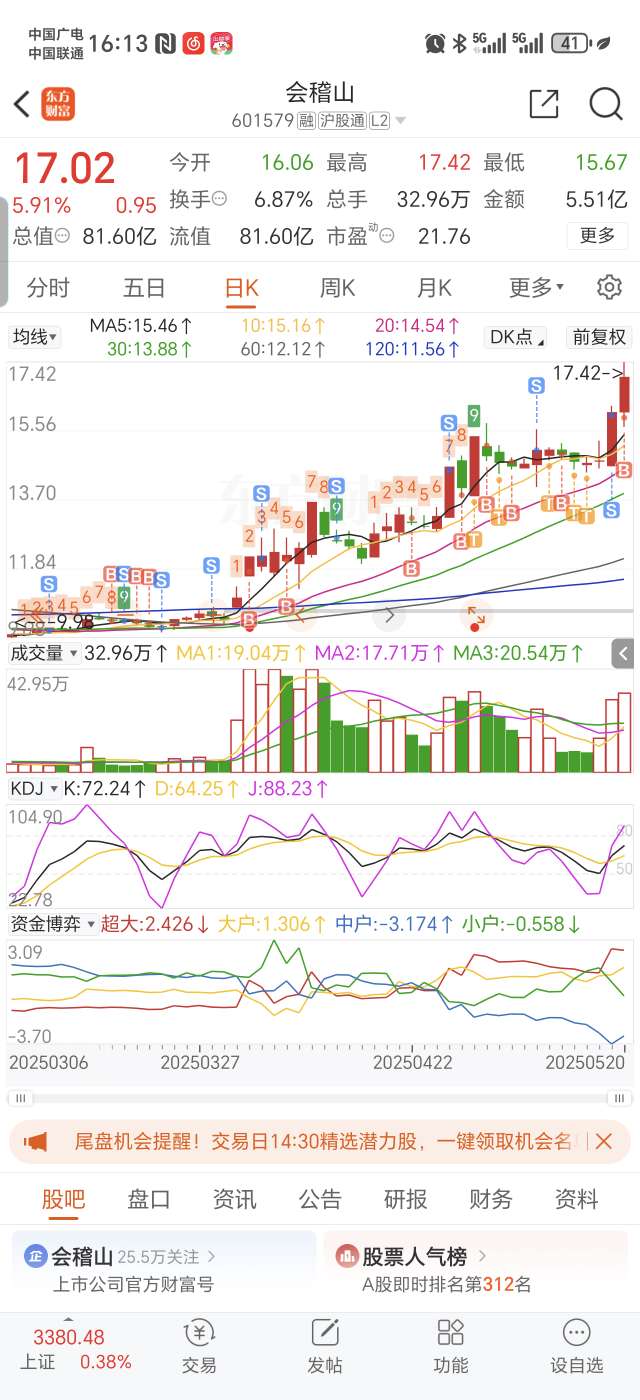 $会稽山(SH601579)$