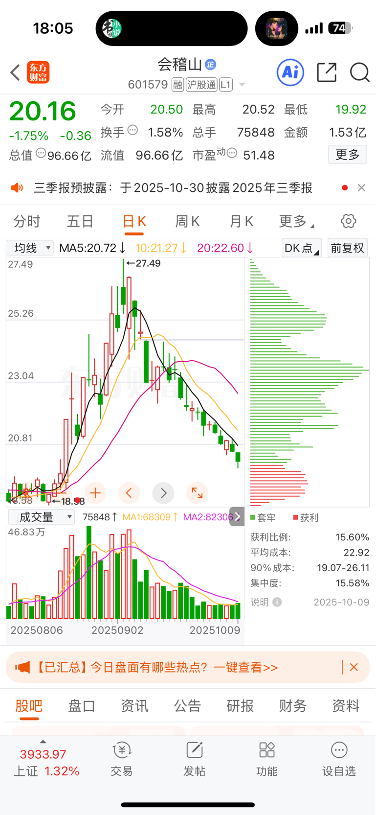 $会稽山(SH601579)$ 今日隔了,亏了5毛一股,但没想到这么多人在山上,真的是烂啊,以后改买塔牌去了