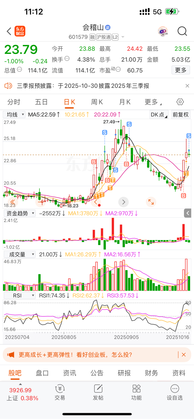 $会稽山(SH601579)$ 等待日线到来