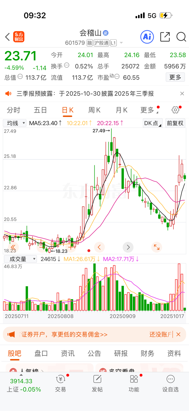 $会稽山(SH601579)$ 看到大家都会很慌、调整心态。这里看好5日线支撑。是没问题的
