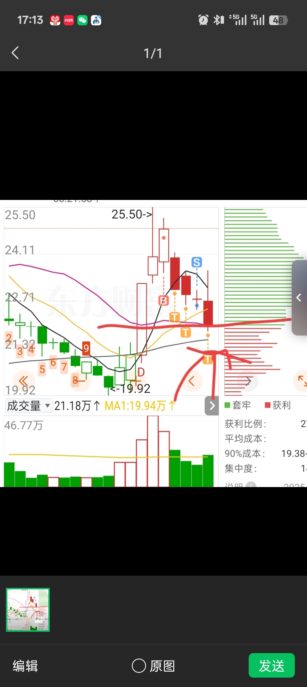 #炒股日记# #复盘记录# 连续调整了几天还是没有破当时涨停的那一根阳线。底部60天线做支撑。今天差不多快已经打到底部,60天线绝对能支撑住。如果破60天线我们就割肉,不破60天线绝对可以上攻,这个星期是关键的这几天,看能不能站稳60天线上攻