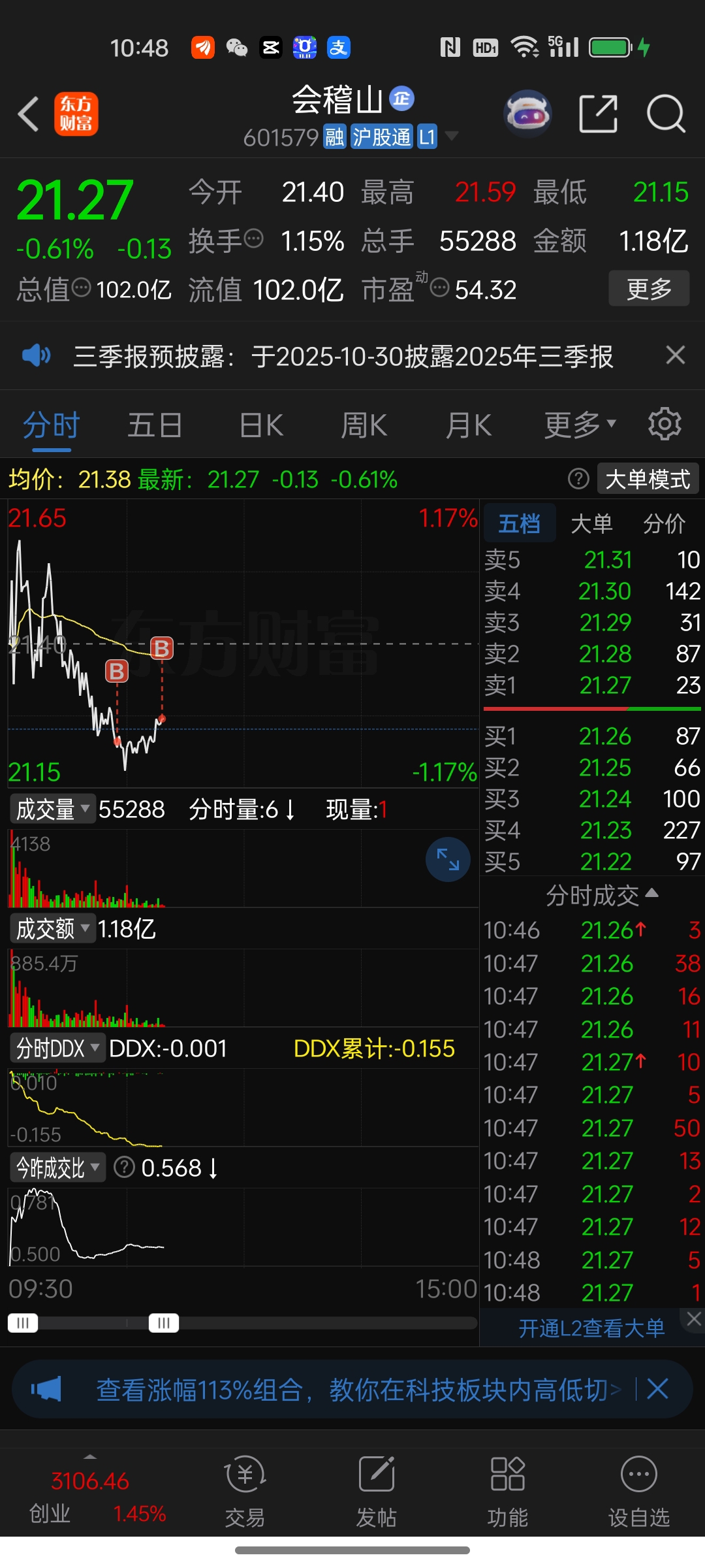 $会稽山(SH601579)$ 可以买了,股票还是比较活得,调整也充分了