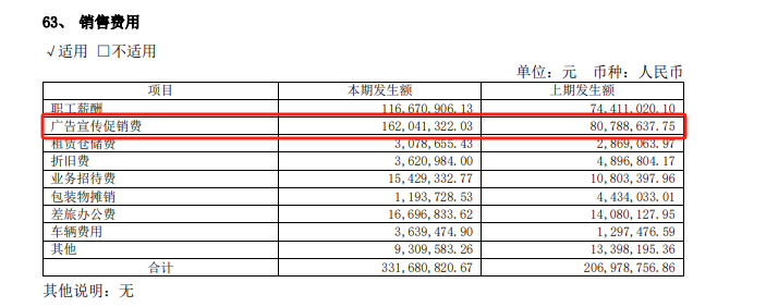 正式上任后,杨刚迅速出手,一个显著特点就是在营销上加大投入。2023年公司广告宣传促销费8079万元,同比增长约35%。