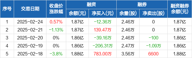 北辰实业:融资净偿还12.36万元,融资余额1.87亿元(02-24)