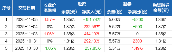 北辰实业:融资净偿还151.74万元,融资余额1.35亿元(11-05)