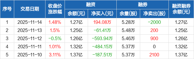 北辰实业:融资净买入194.08万元,融资余额1.27亿元(11-14)