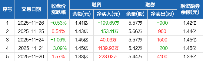 北辰实业:融资净偿还199.69万元,融资余额1.41亿元(11-26)
