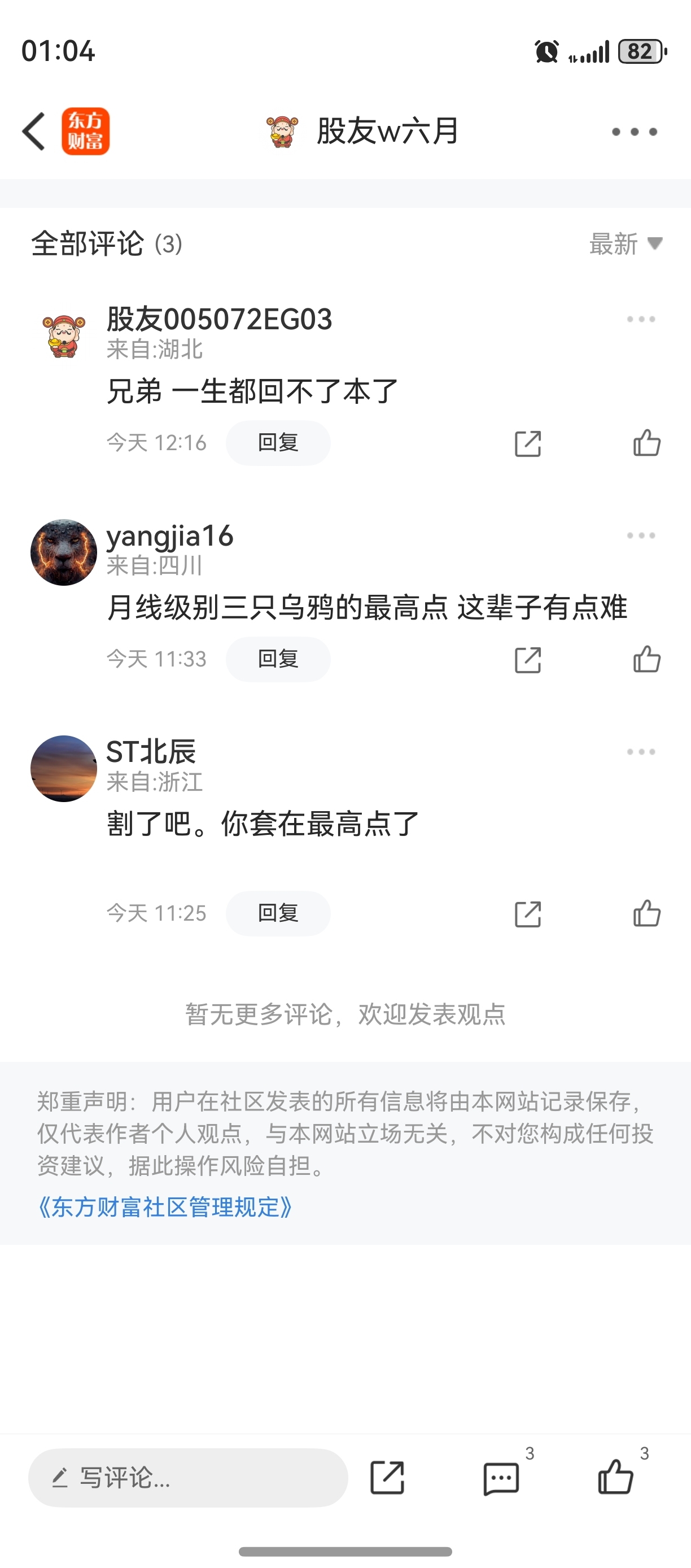 温馨提示: 1.根据《证券法》规定,禁止编造、传播虚假信息或者误导性信息,扰乱证券市场;2.用户在本社区发表的所有资料、言论等仅代表个人观点,与本网站立场无关,不对您构成任何投资建议。用户应基于自己的独立判断,自行决定证券投资并承担相应风险。《东方财富社区管理规定》