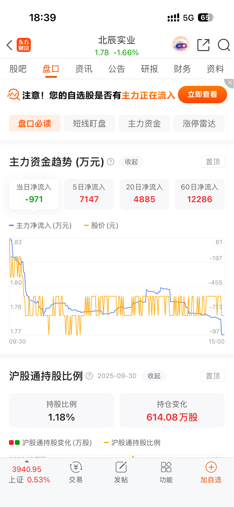$北辰实业(SH601588)$ 怪不得资金流入