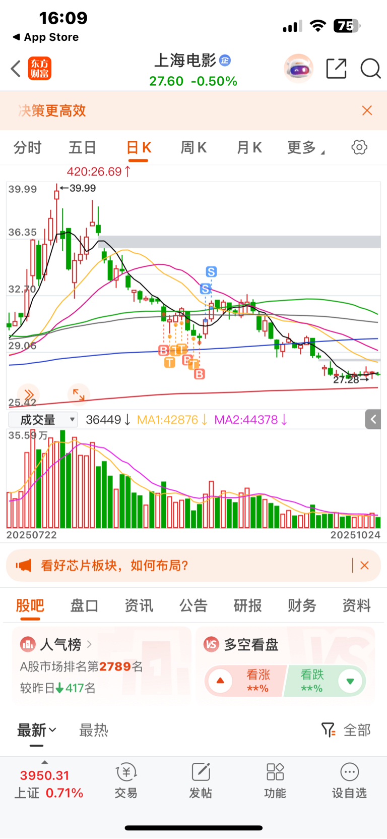 9月份吃了几个点反弹就再也没进去,下跌趋势的票只能搏反弹不能久留,等破了27再进来搏个反弹