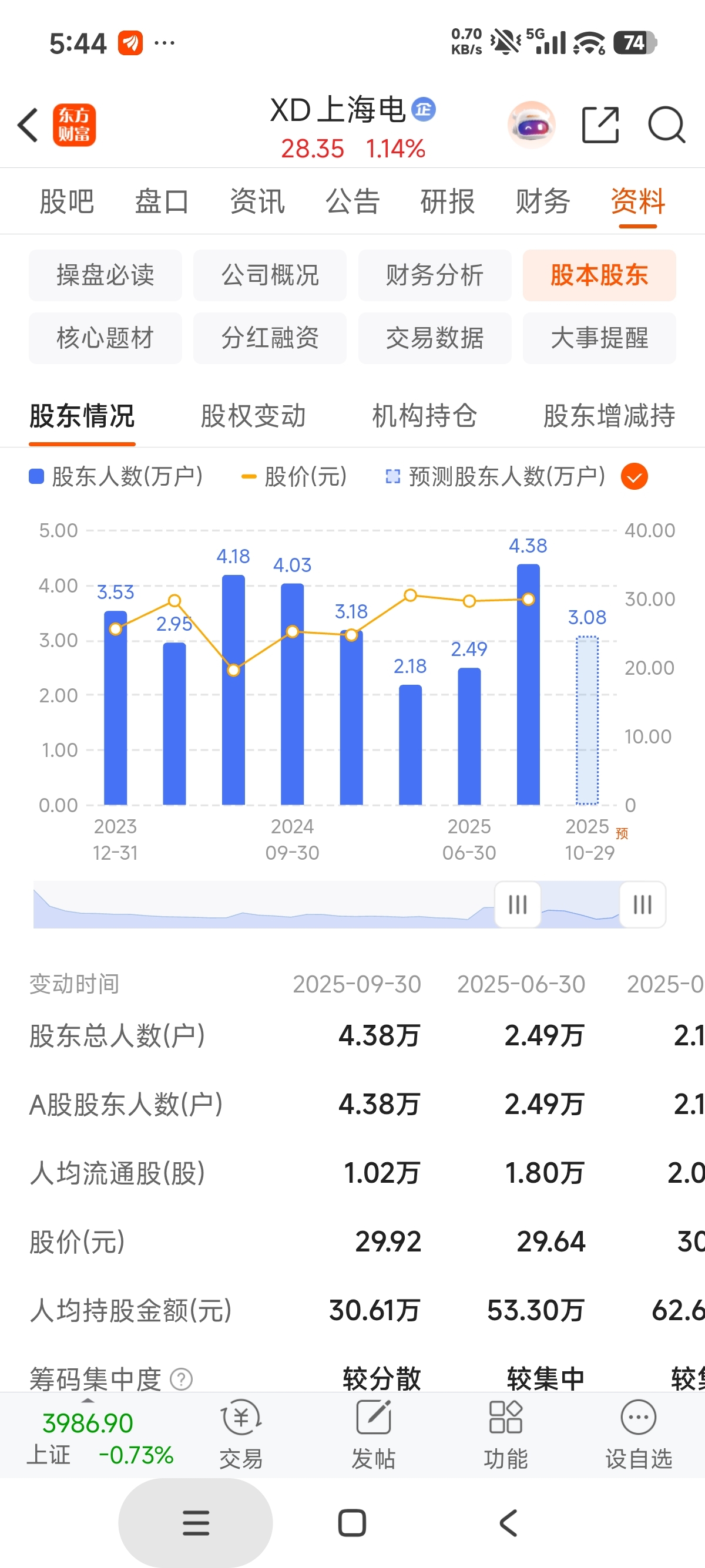 $XD上海电(SH601595)$ 股东人数三季度翻了一倍,这个位置,是不是底部都不好说。