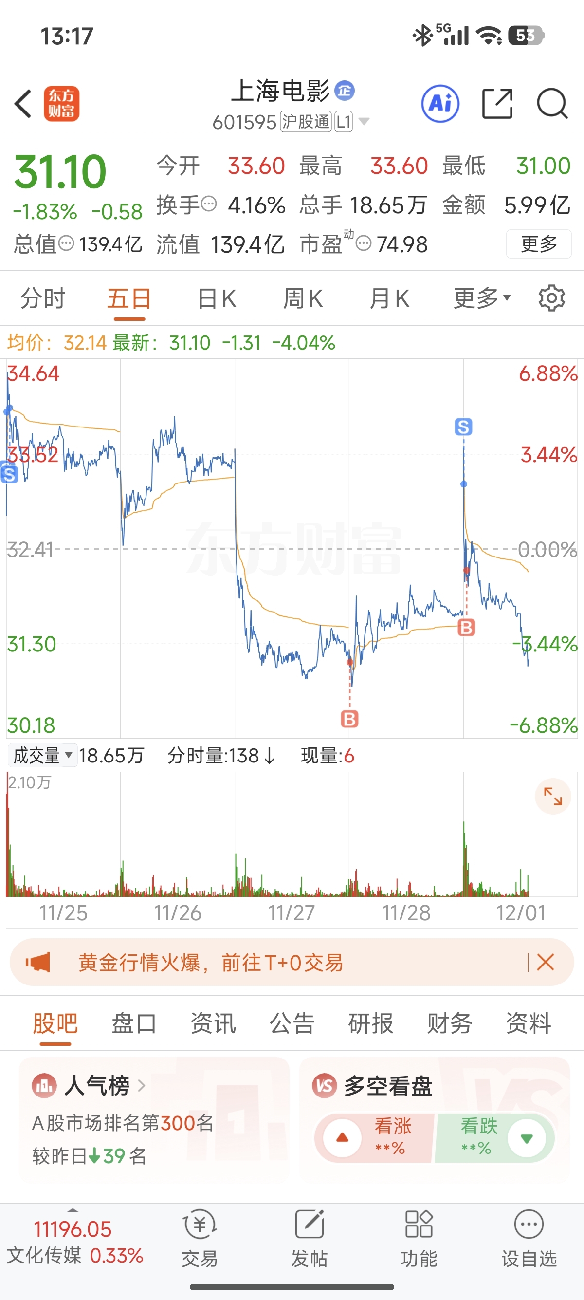 $上海电影(SH601595)$ 没想到主力这么厉害。