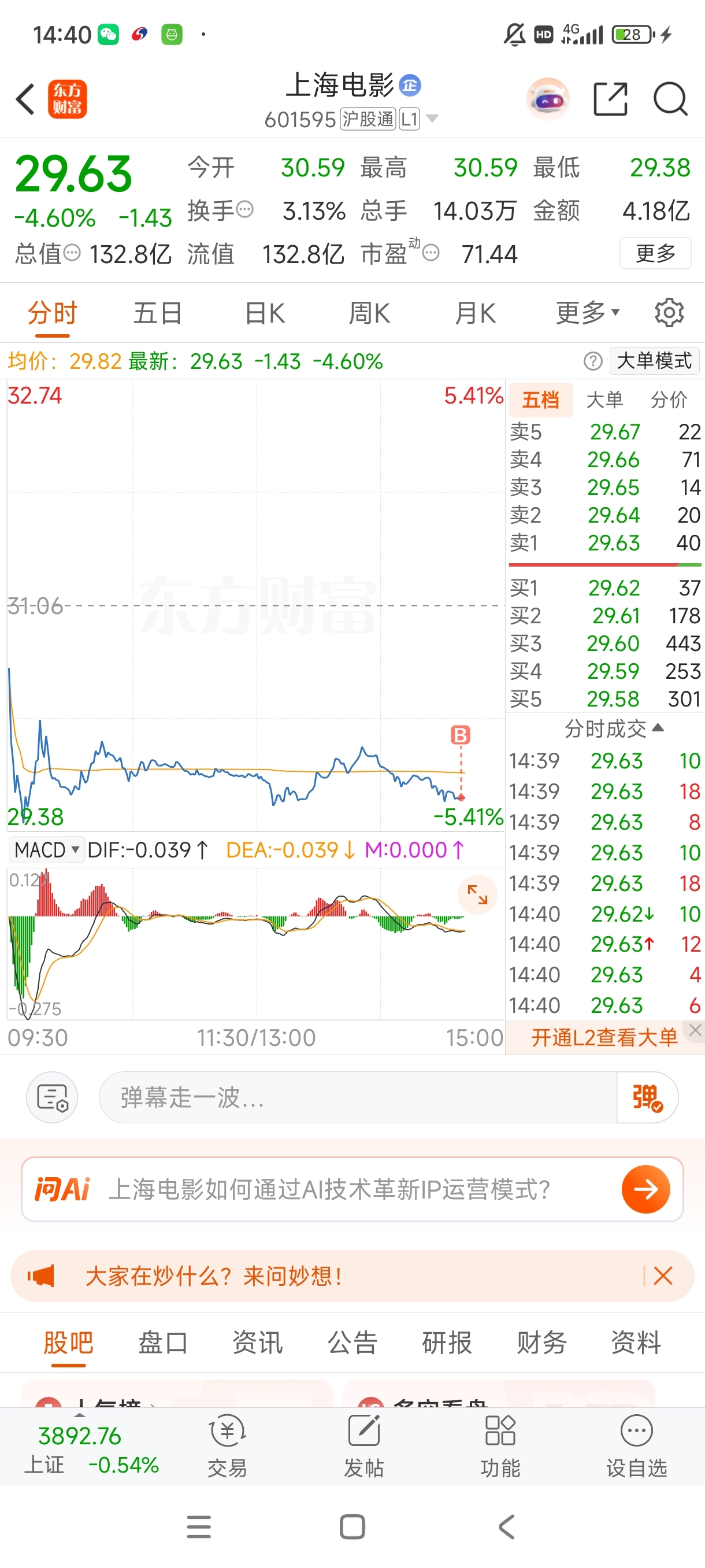 $上海电影(SH601595)$ 我进来了,大跌马上开始!