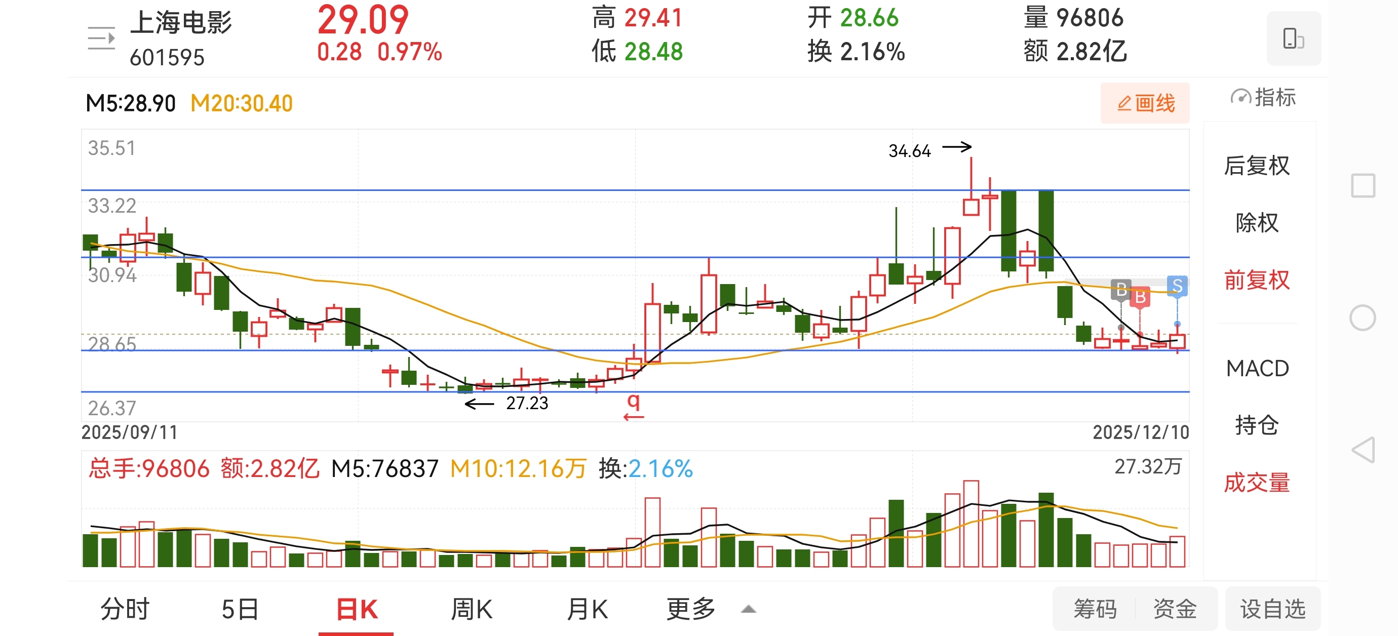 对于我来讲,影视影院春节档行情迟早会来,而我在一个相对安全的位置博一下还是值得的。设置好止损位,破了条件单无脑割肉,亏一两个点完全在自己承受范围之内。当然涨了,压力位直接减仓甚至清仓,吃个波段何乐而不为。