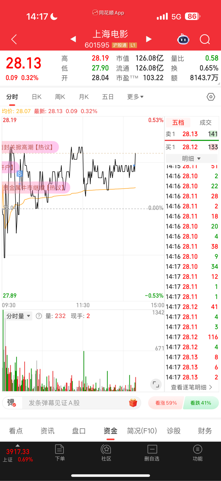 $上海电影(SH601595)$ 清仓了,赔了五个点,从我卖点来看,感觉是洗盘,1⃣卖就拉
