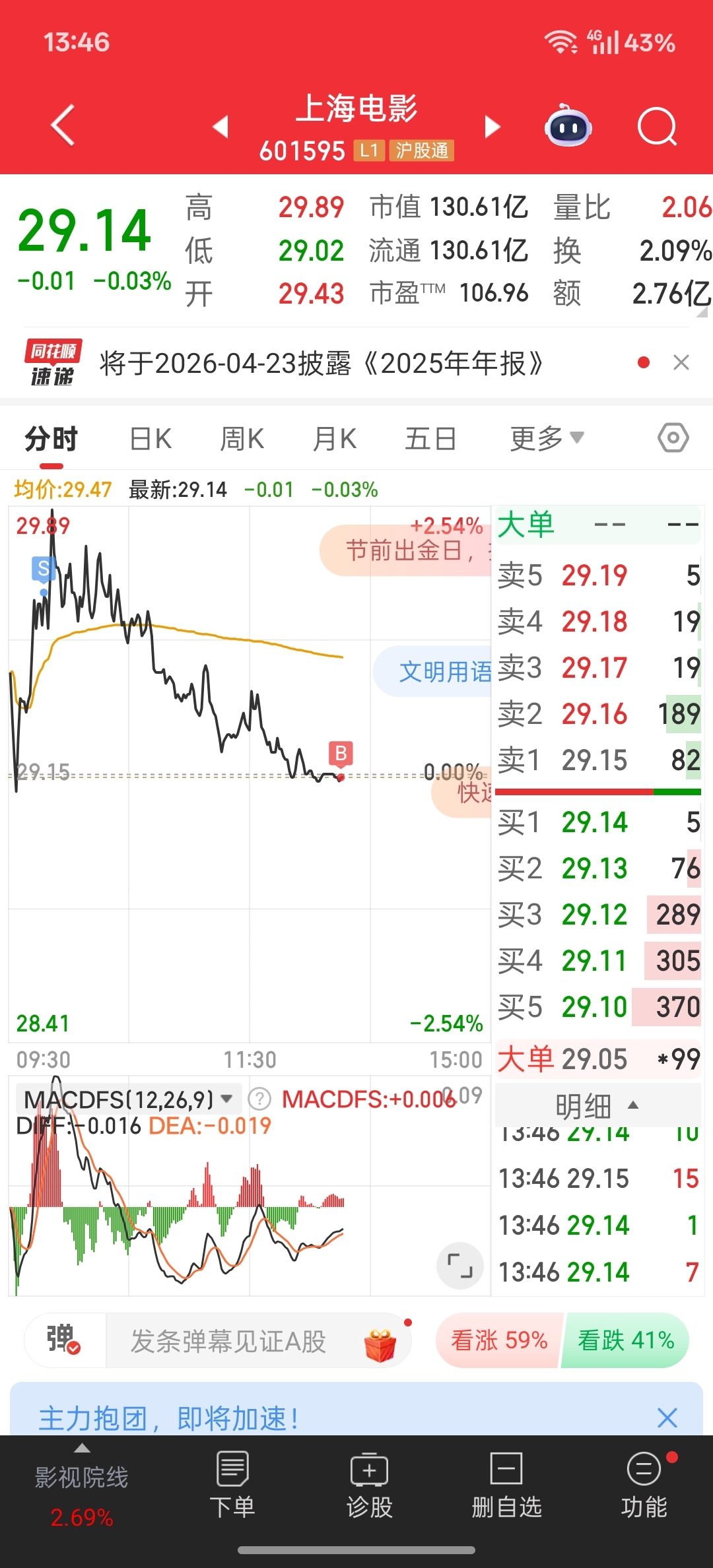 $上海电影(SH601595)$ 兄弟们不好意思,我是t狗。