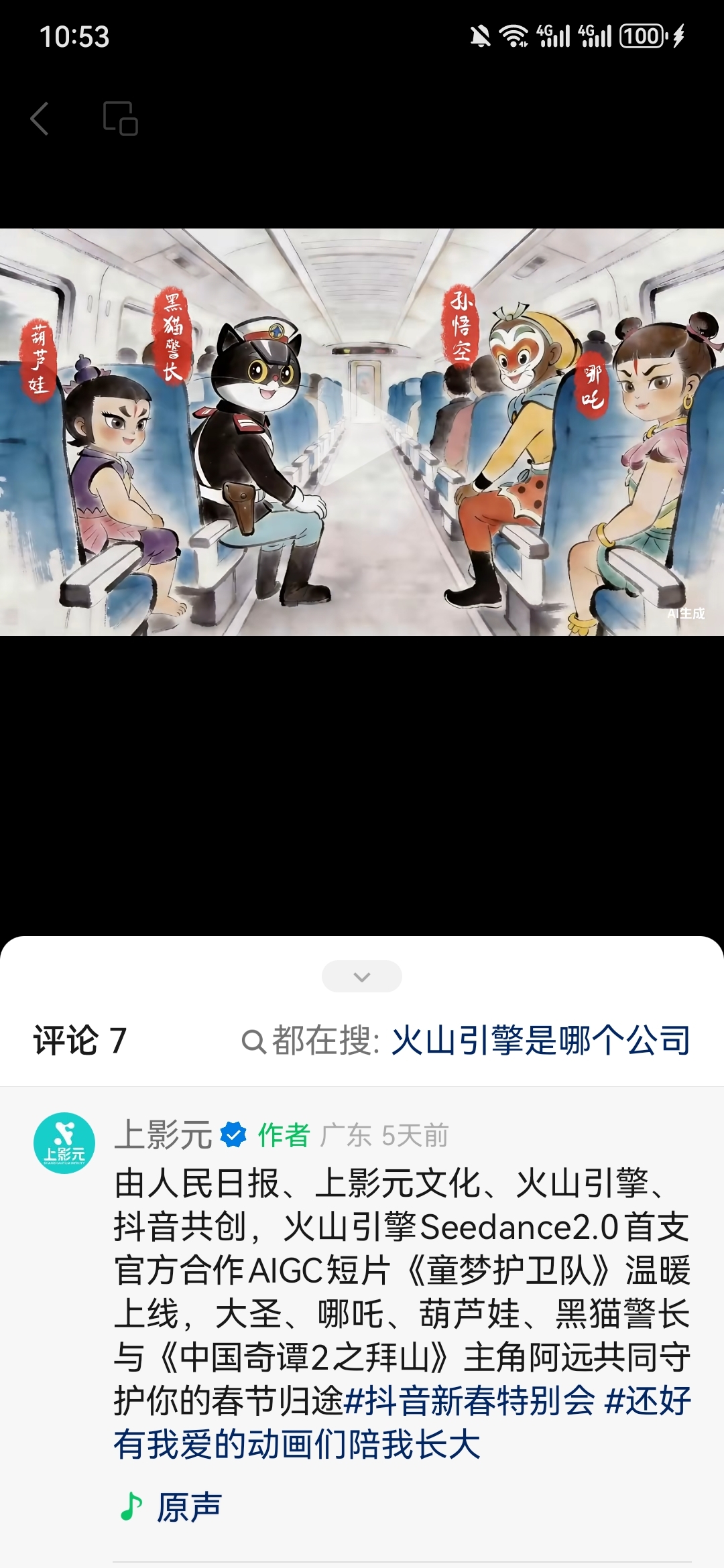 $上海电影(SH601595)$ 虽然Seedance2.0才刚刚发布,但上海电影就立即与人民日报、火山引擎、字节跳动(抖音)共同创作动漫短片《童梦护卫队》。