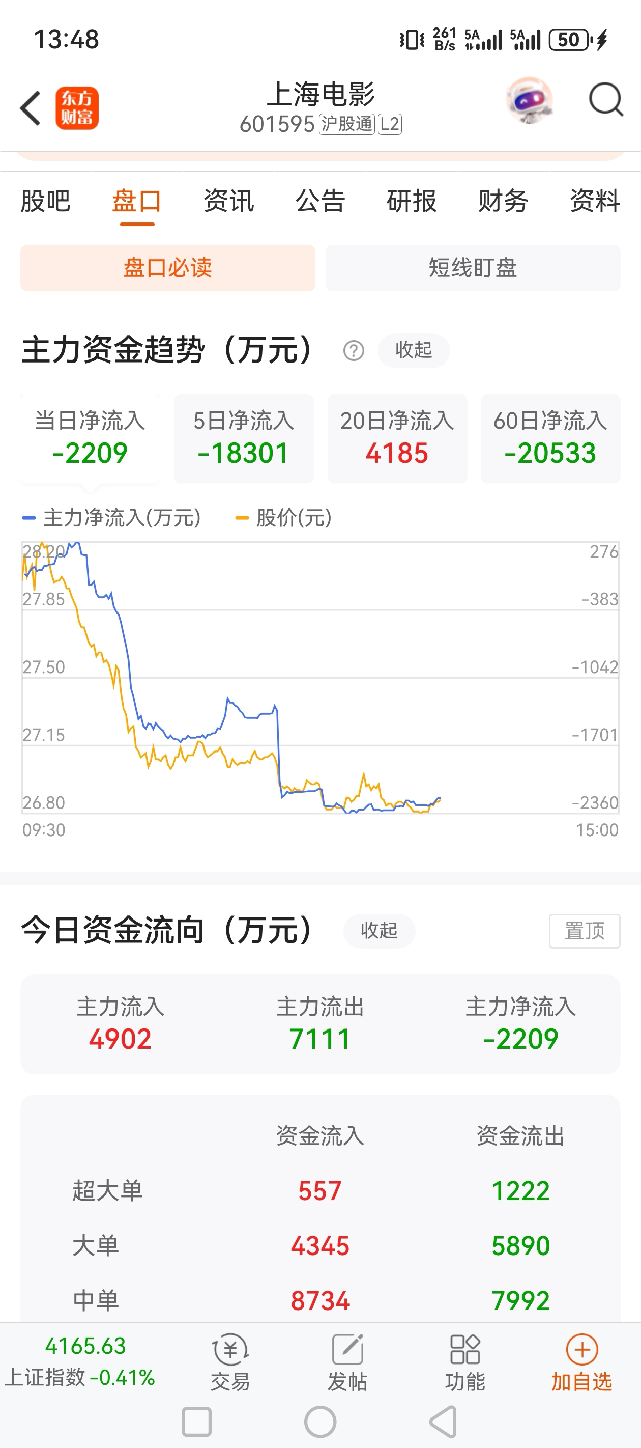 $上海电影(SH601595)$ 主力都跑啥样了,还等,明天还要跌