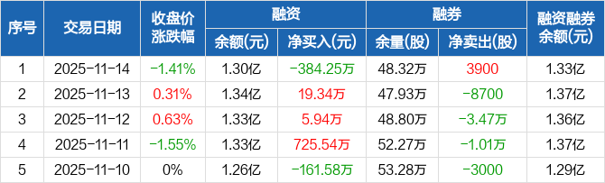 中国外运:融资净偿还384.25万元,融资余额1.3亿元(11-14)