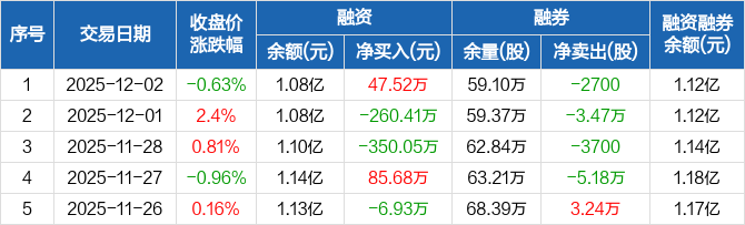 中国外运:融资净买入47.52万元,融资余额1.08亿元(12-02)