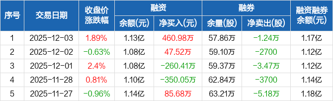 中国外运:融资净买入460.98万元,融资余额1.13亿元(12-03)