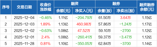 中国外运:融资净偿还204.79万元,融资余额1.11亿元(12-04)