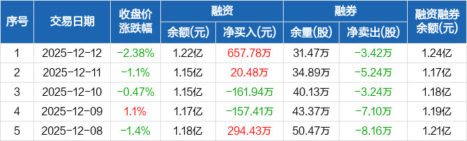 中国外运:融资净买入657.78万元,融资余额1.22亿元(12-12)