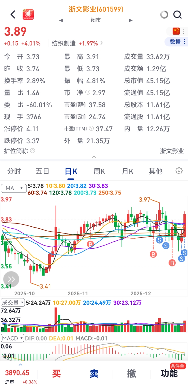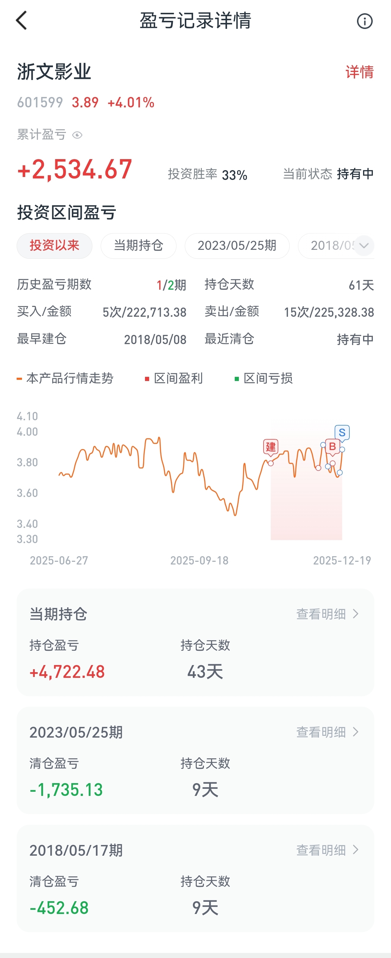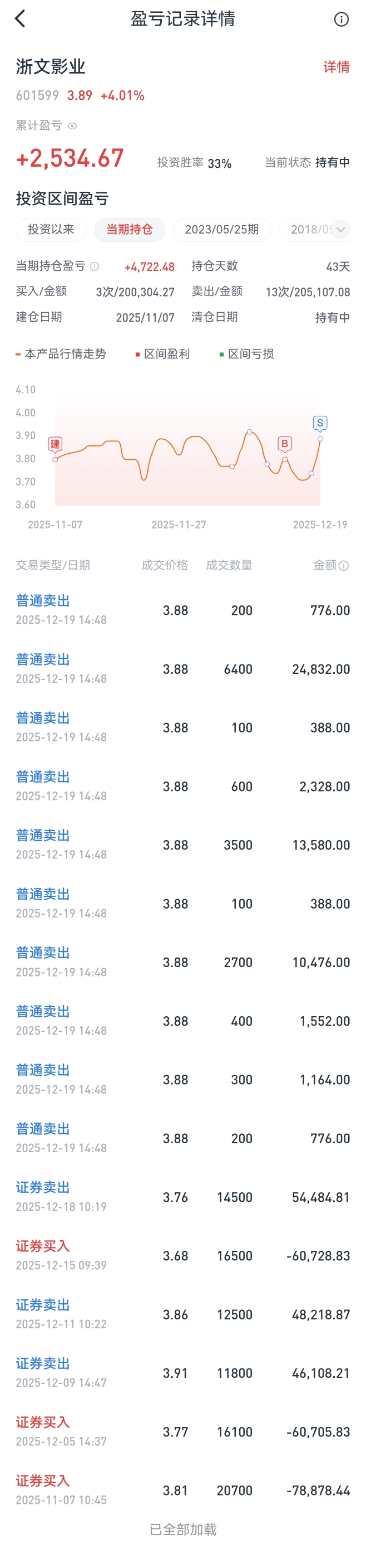 $浙文影业(SH601599)$ 不亏钱,撤,还剩11只。这回是真的卖出了。我即将成为整个市场中极少数未在任何一家企业(3家退市的除外)亏过钱的散户之一,加油!这是只潜力股,留下的不到7.8(翻倍)别卖。