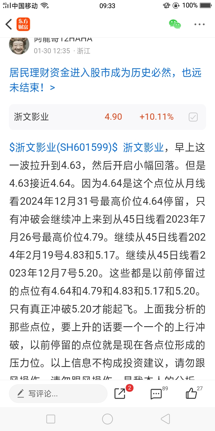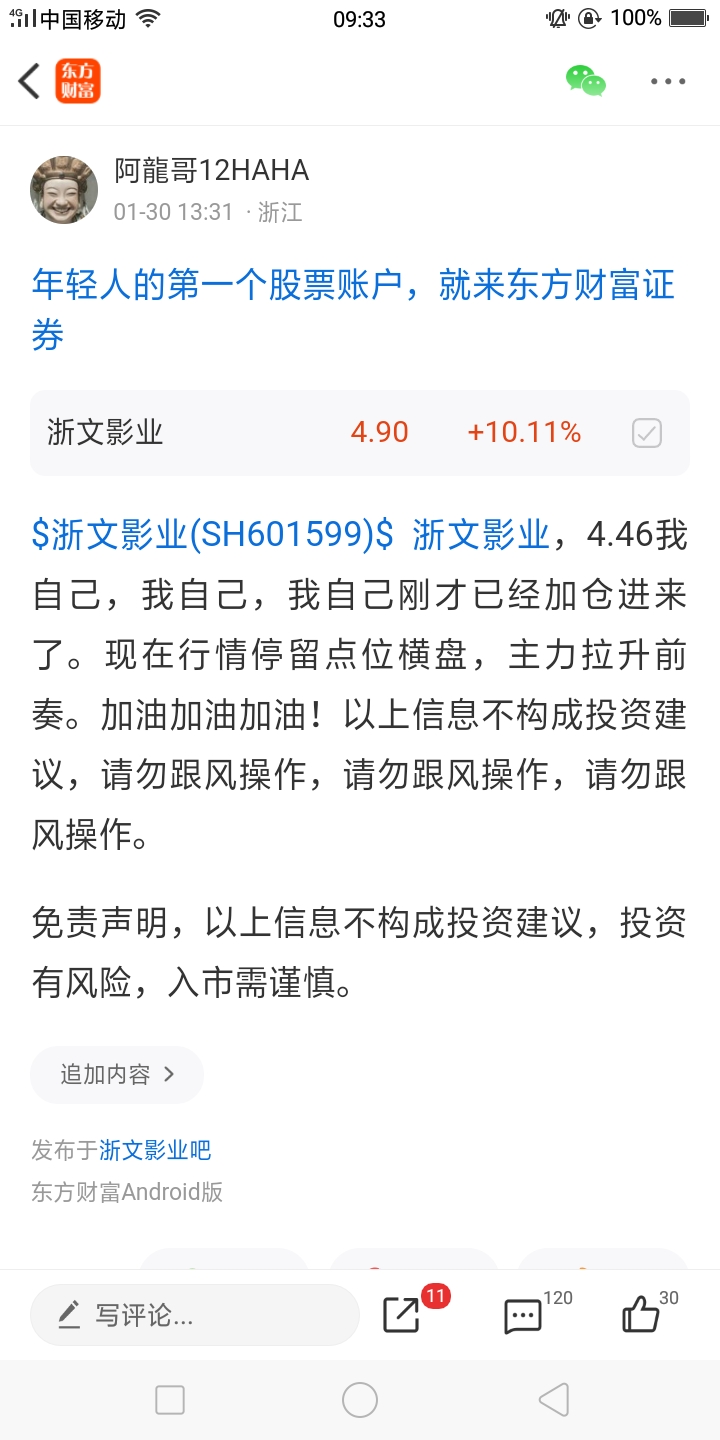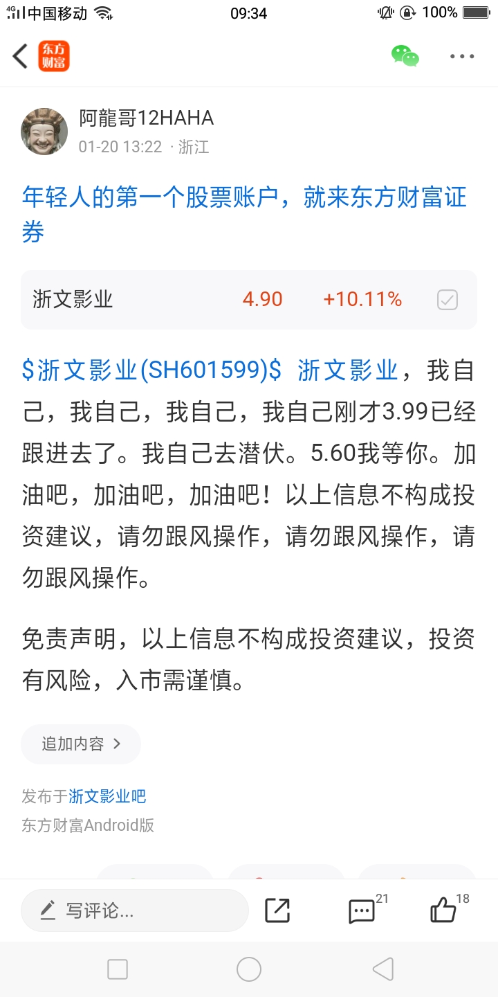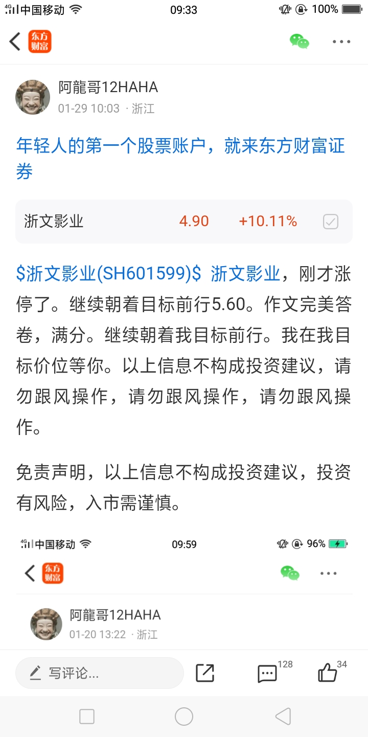 $浙文影业(SH601599)$ 浙文影业, 刚才涨停了,涨停了,涨停了,前几天加仓了一波。继续朝着我目标5.60前行。离目标越来越近了。加油加油加油吧!以上信息不构成投资建议,请勿跟风操作,请勿跟风操作,请勿跟风操作。