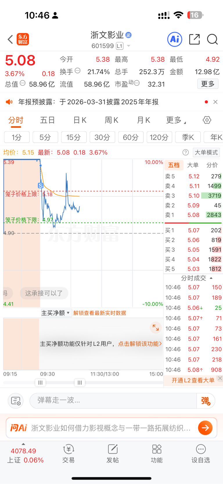 $浙文影业(SH601599)$ 开盘就跑了