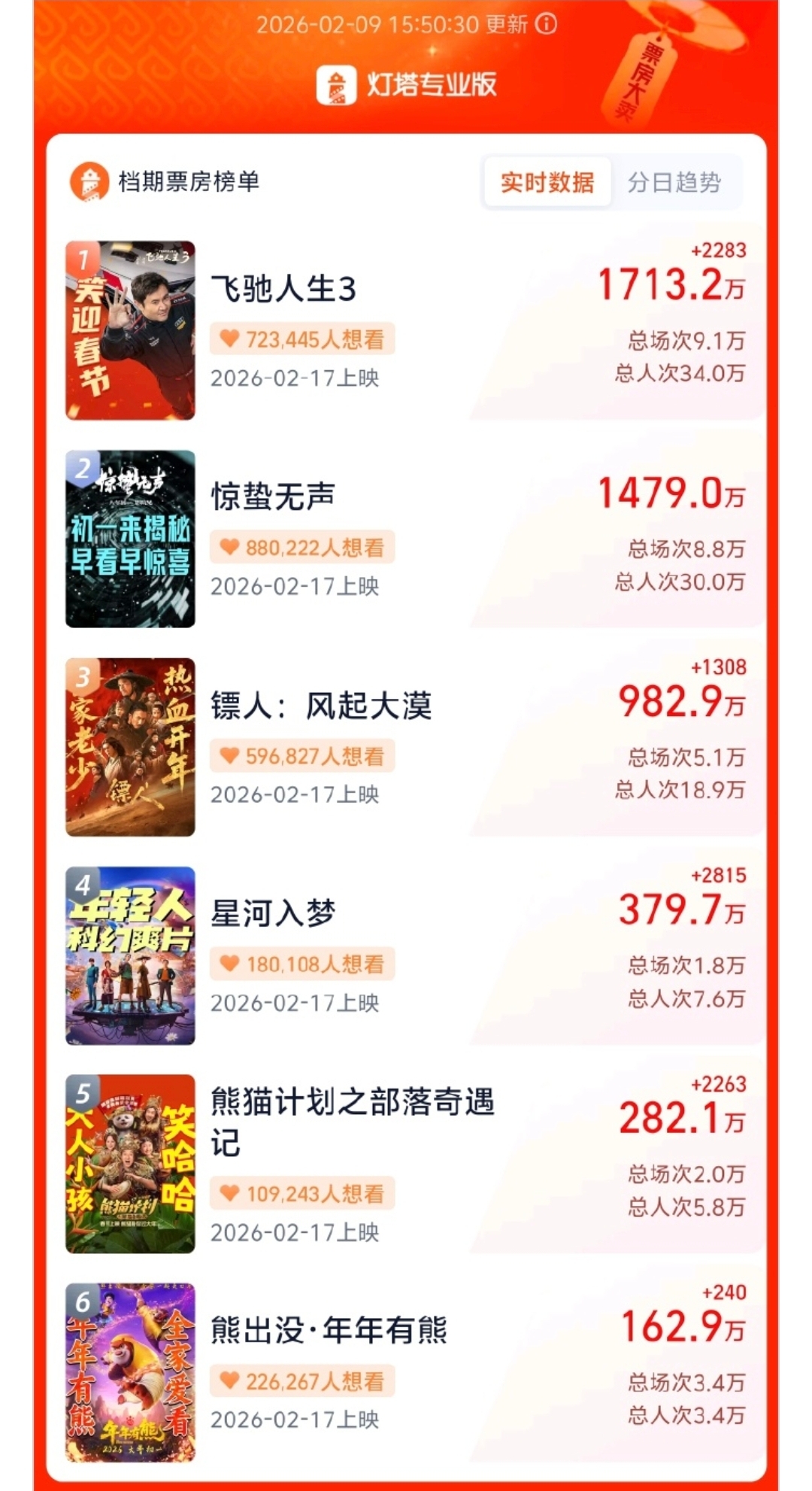$浙文影业(SH601599)$ 公司投资两部贺岁片,《惊蛰无声》《镖人风起大漠》,预售票房来了
