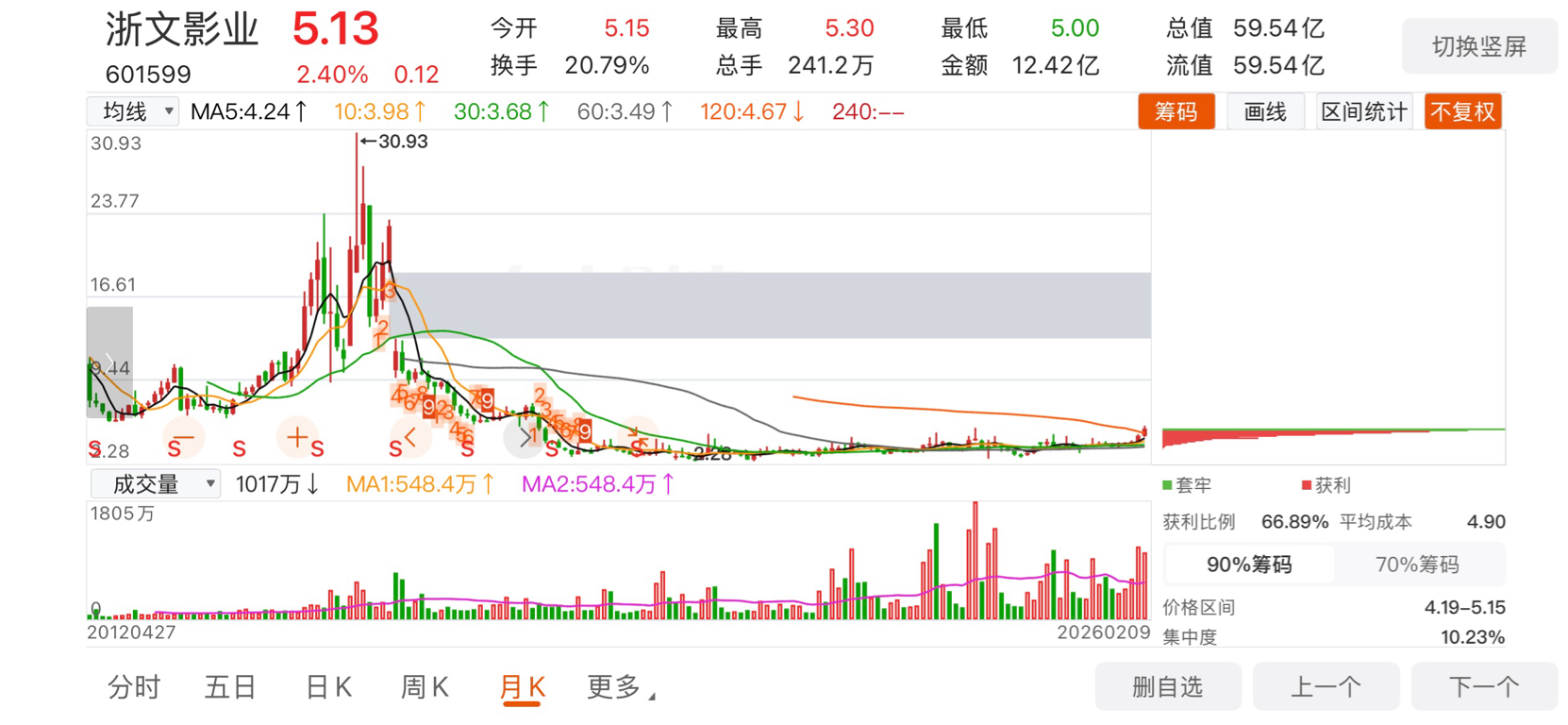 $浙文影业(SH601599)$ 这不还在地面吗?