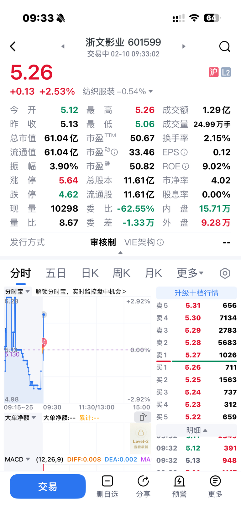 $浙文影业(SH601599)$ 点火200w给你们拉涨停